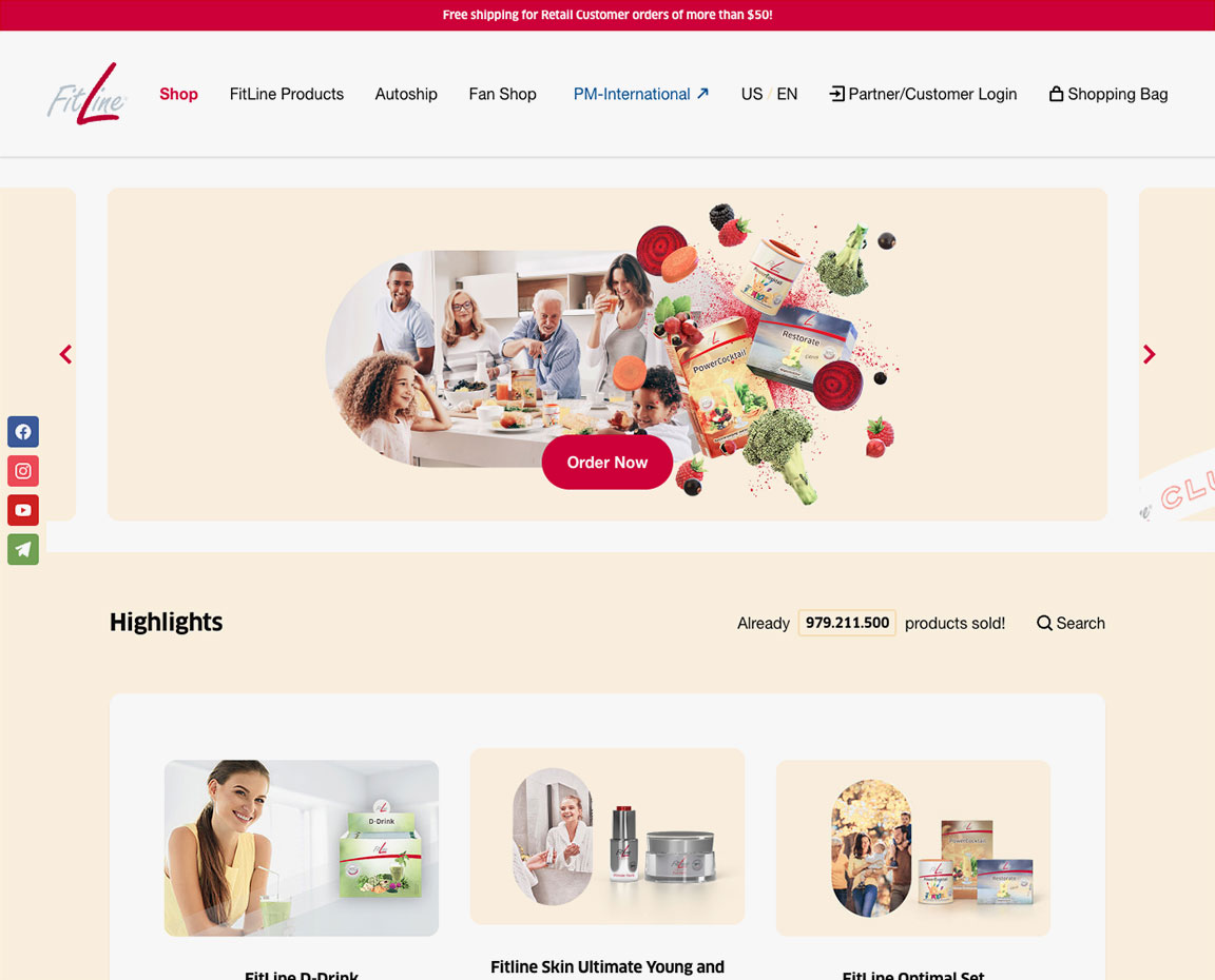 This project was another redesign of the FitLine online shopping experience, initiated under new leadership within the marketing department. Following the new CMO, the company sought to clearly separate the business-oriented PM-International brand from the consumer-focused FitLine product line. As part of this strategic shift, the website's visual identity was updated to align with the FitLine Red color scheme, emphasizing freshness, energy, and health. This design served as an updated skin layered over the existing 2016 site architecture and acted as a transitional phase while the company planned a broader digital transformation.